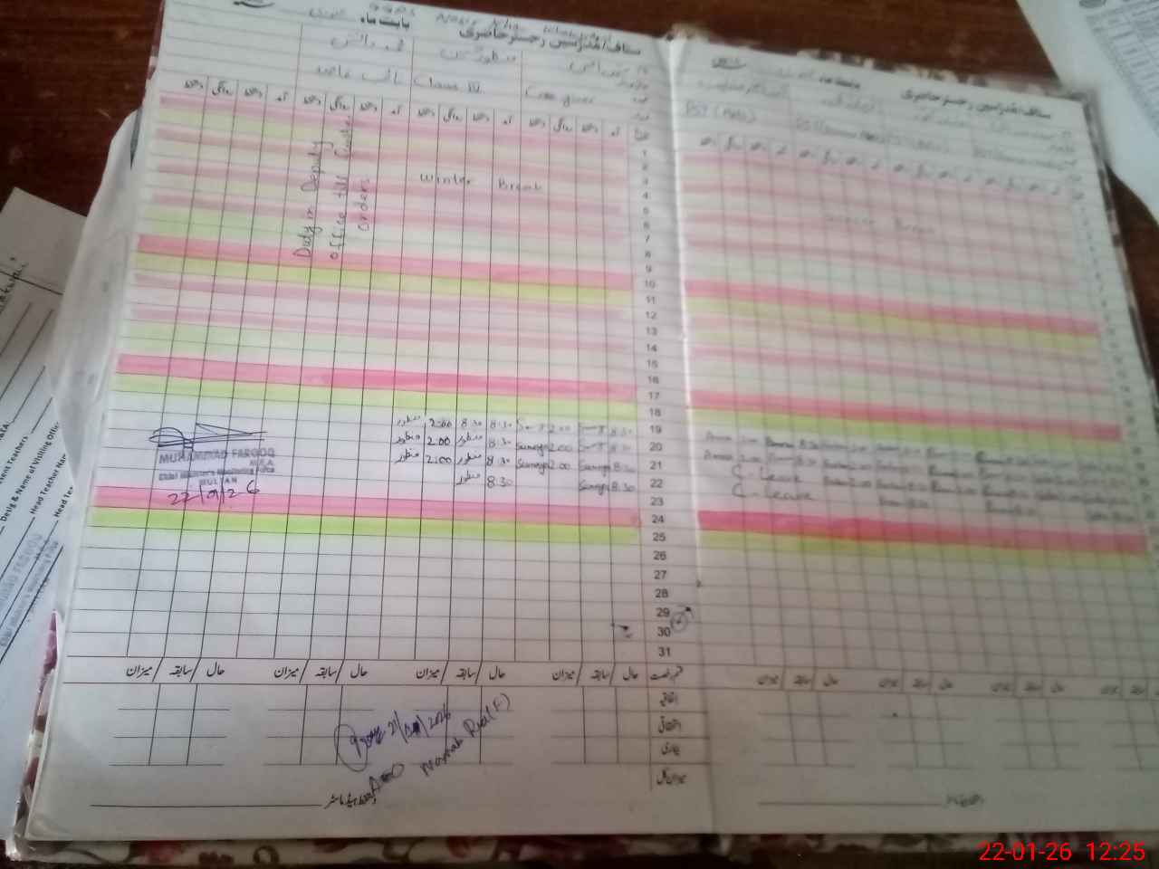 | CNIC | Full Name | Designation | R/C | Absence During Last Calender Month |