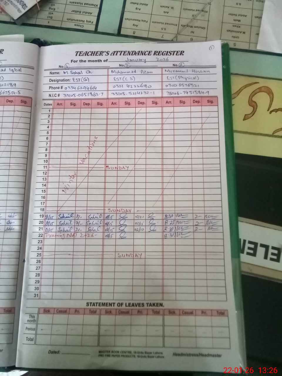 | Name: MU**** AM**** Designation: (School Headmaster's/Headmistress's) EST (GENERAL) Phone/Cell Number: 03**** |