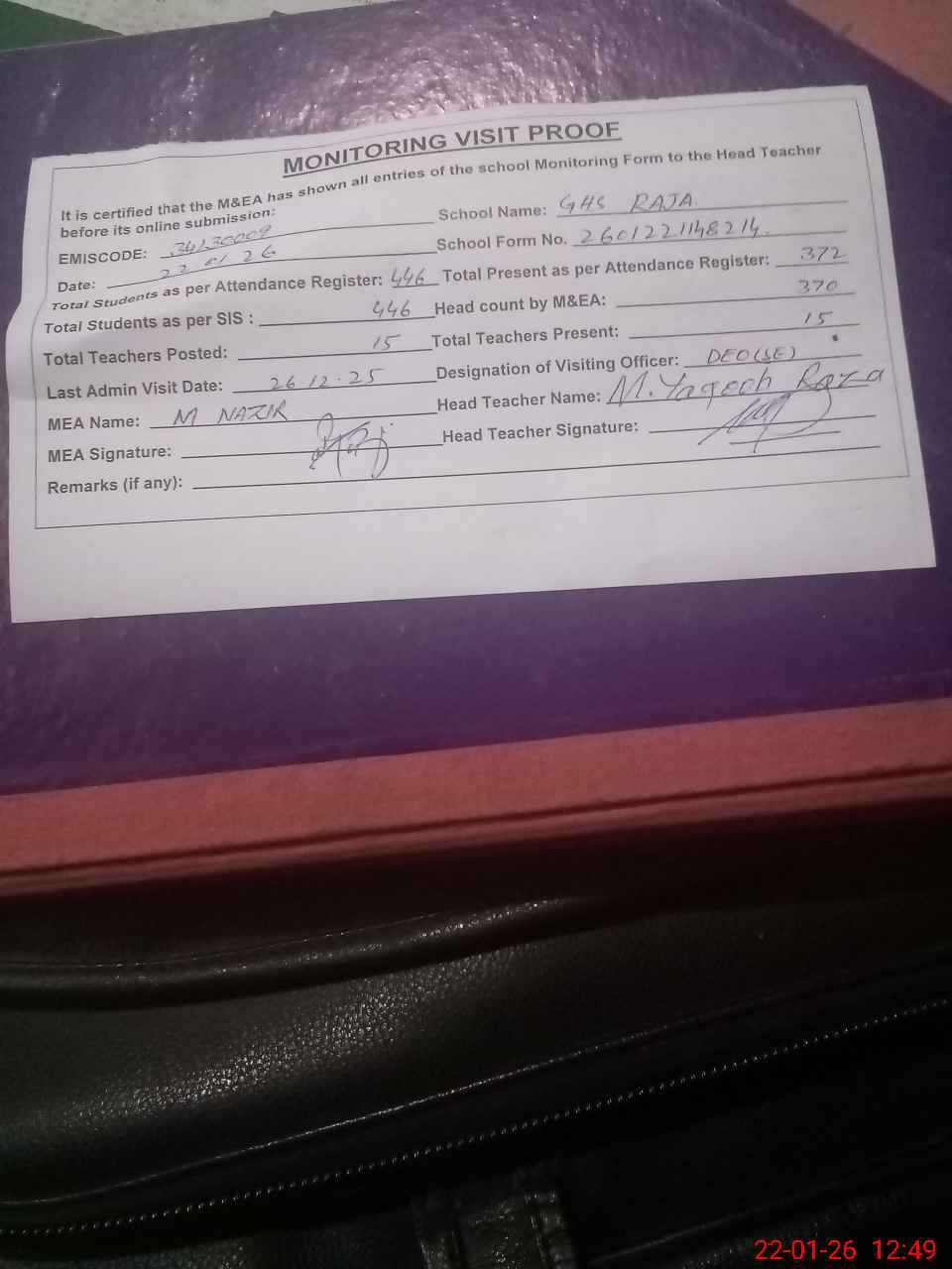 | EMIS Code: 34130009 | Name of School: GHS RAJA | |||