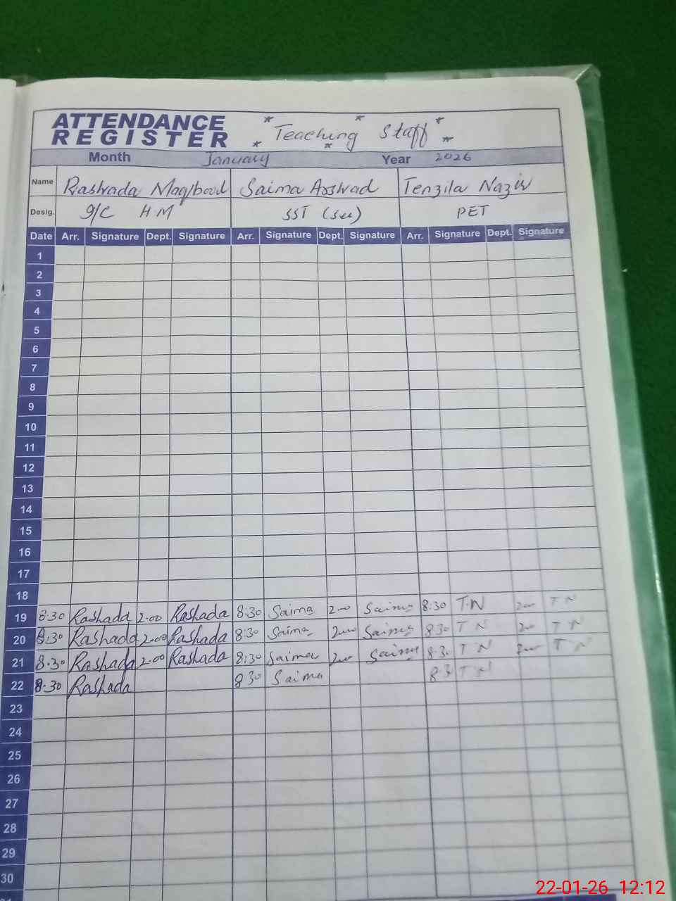 | Name: RA**** MA**** Designation: (School Headmaster's/Headmistress's) SST (ARTS) Phone/Cell Number: 03**** |