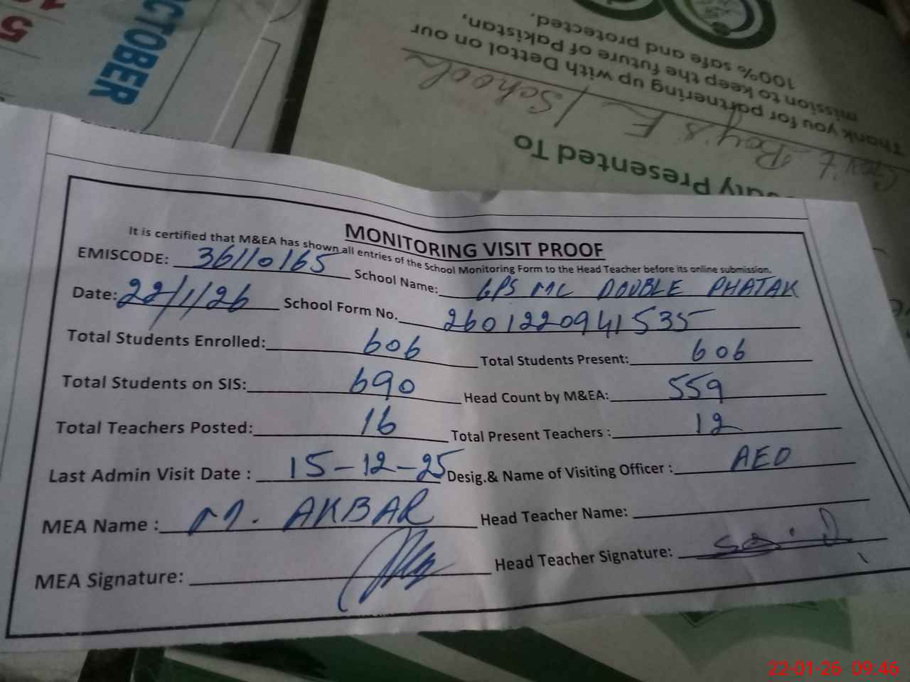 | EMIS Code: 36110165 | Name of School: GPS MC DOUBLE PHATAK VEHARI ROAD MULTAN | |||