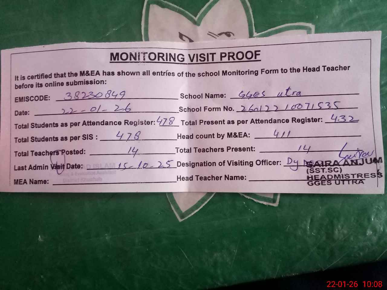 | EMIS Code: 38230849 | Name of School: GGES UTRA | |||