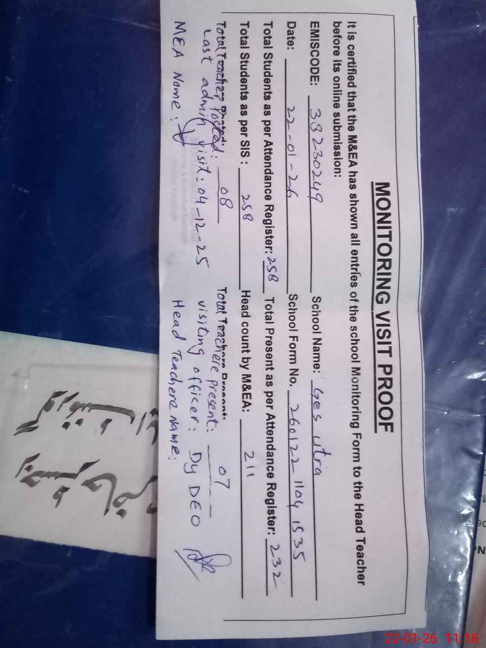 | EMIS Code: 38230249 | Name of School: GES UTRA | |||