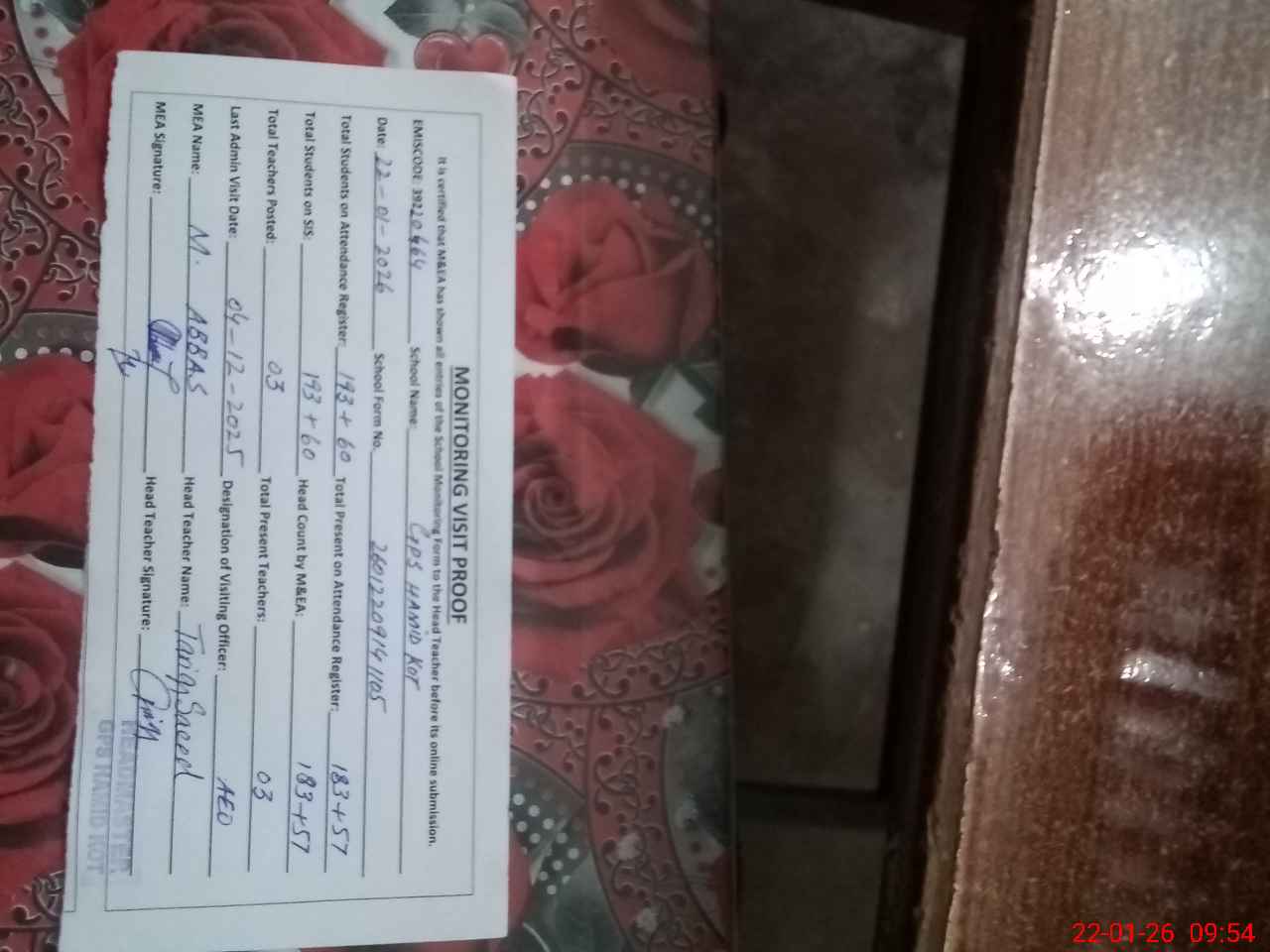 | EMIS Code: 39220464 | Name of School: GPS HAMEED KOT (MEHMOOD KOT) | |||