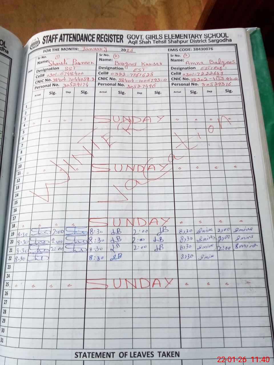 | Name: SH**** PA**** Designation: (School Headmaster's/Headmistress's) SST ART Phone/Cell Number: 03**** |