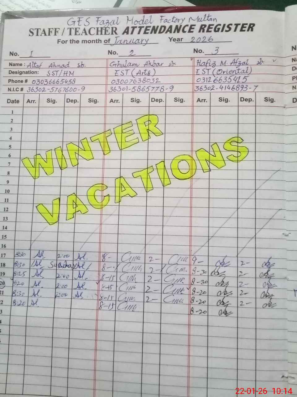 | Name: AL**** AH**** Designation: (School Headmaster's/Headmistress's) S.S.T.(SC) Phone/Cell Number: 03**** |