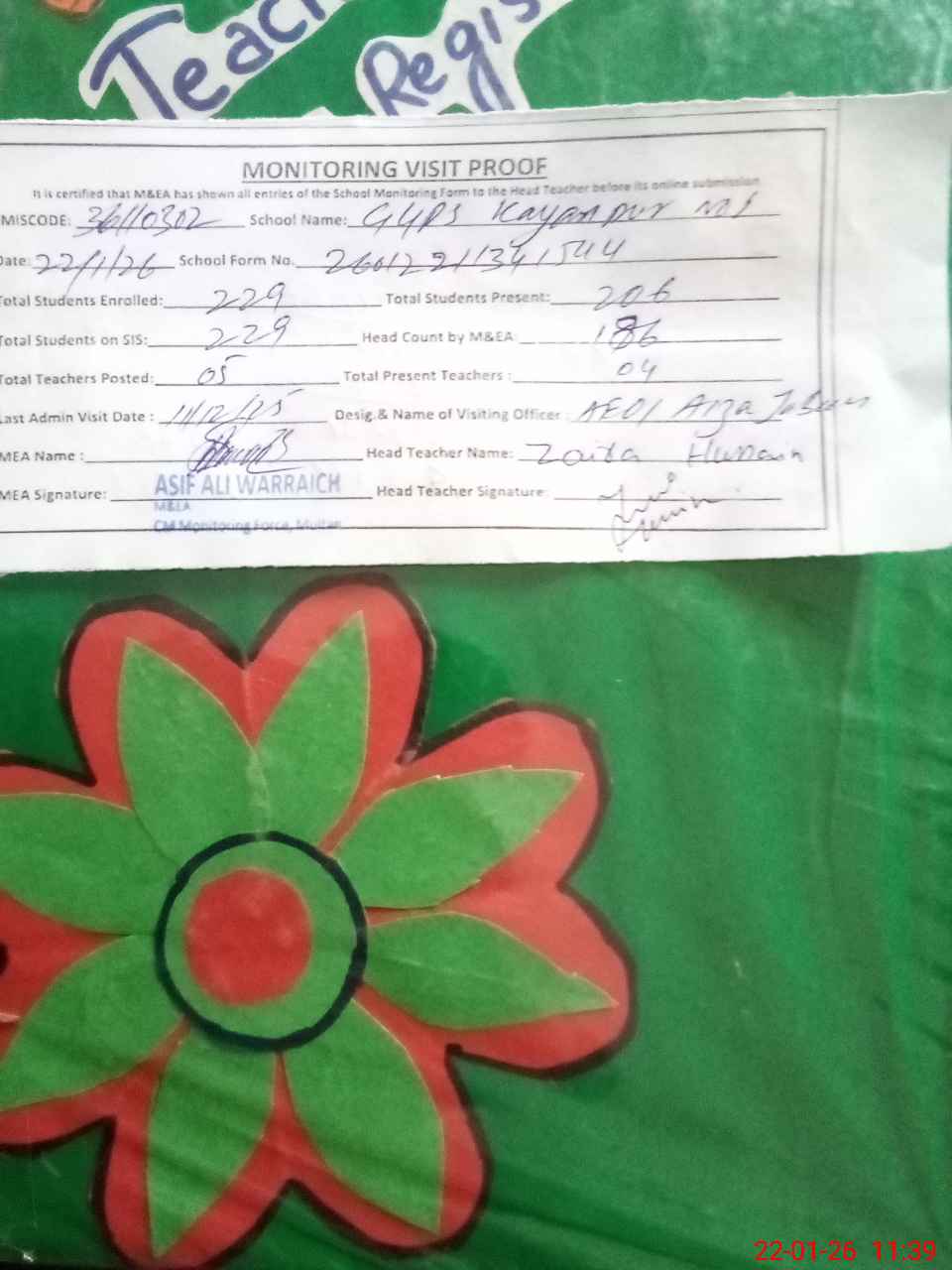| EMIS Code: 36110302 | Name of School: GGPS KAYAN PUR NO 1 QASBA MARAL ROAD MULTAN | |||