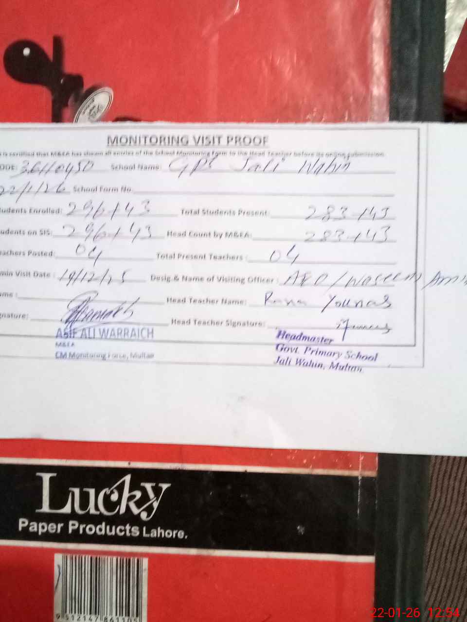 | EMIS Code: 36110450 | Name of School: GPS JALI WAHIN P/O RANGEEL PUR | |||