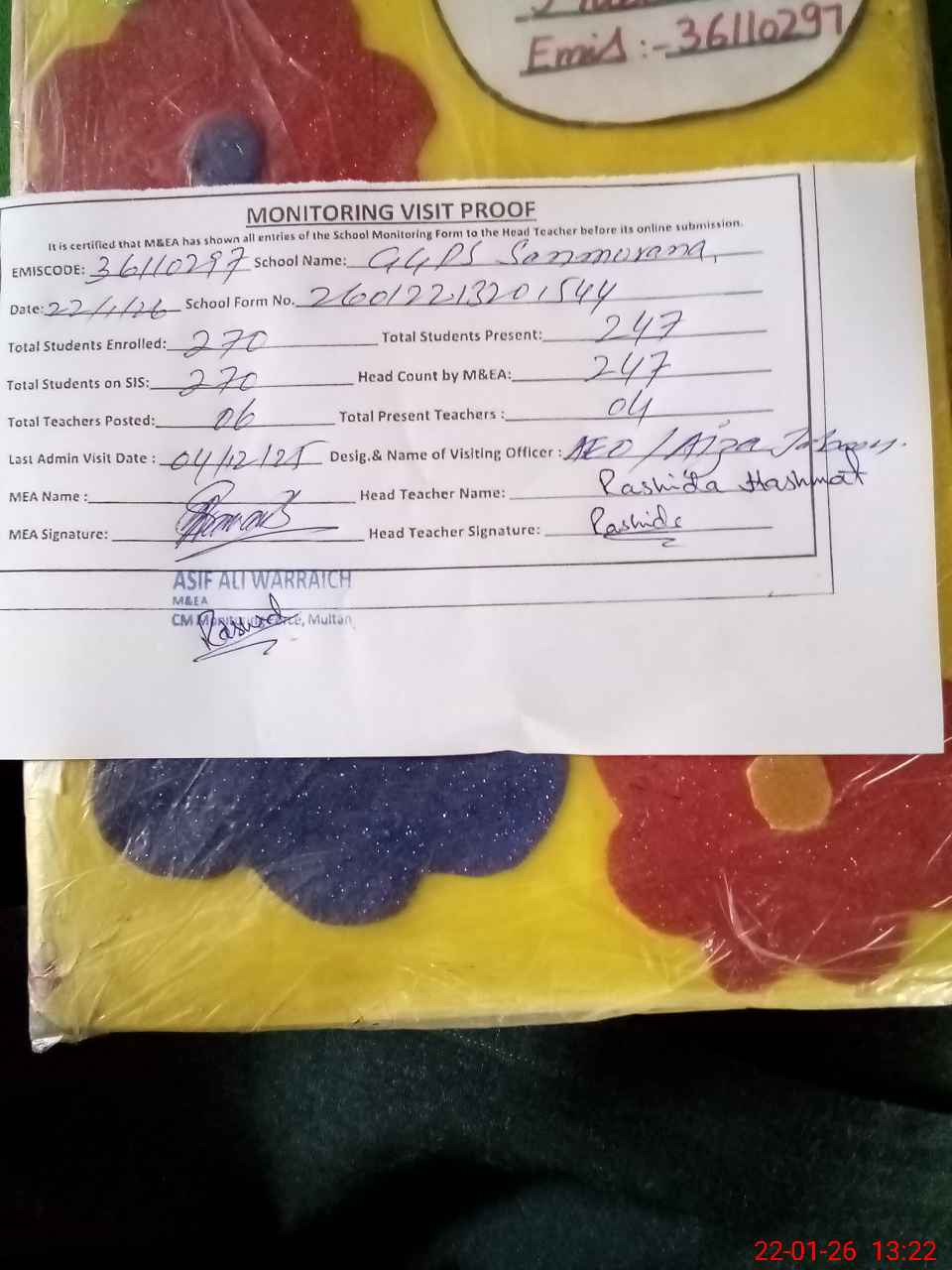 | EMIS Code: 36110297 | Name of School: GGPS SANMOO RANA NEAR SHARIF PURA CHOWK | |||
