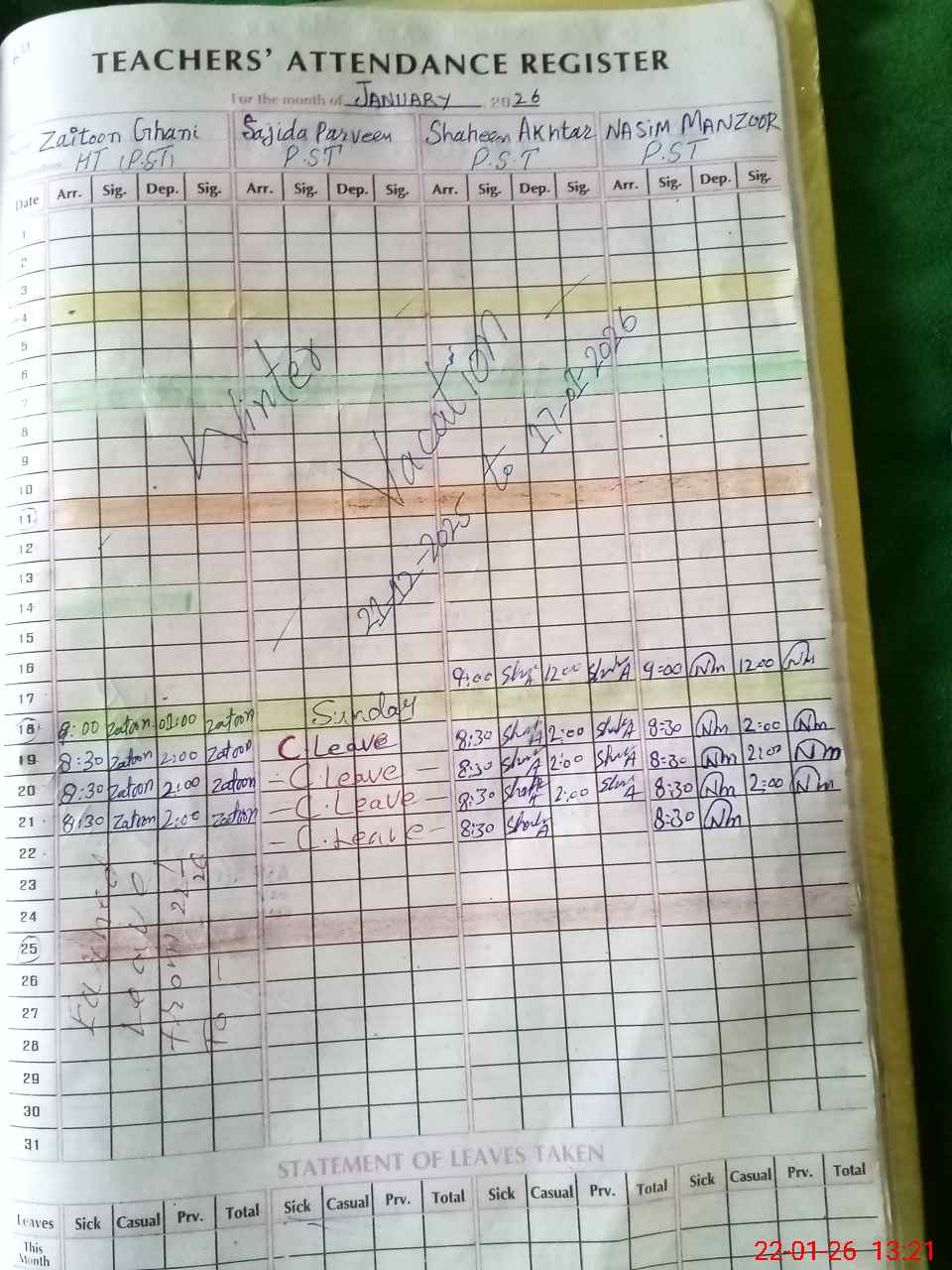 | 33**** | Sa**** Pe**** | PST Science/Maths | Regular | 0 | 0 | 0 | 0 | 0 | 0 | 0 | 0 | 0 | Casual |
