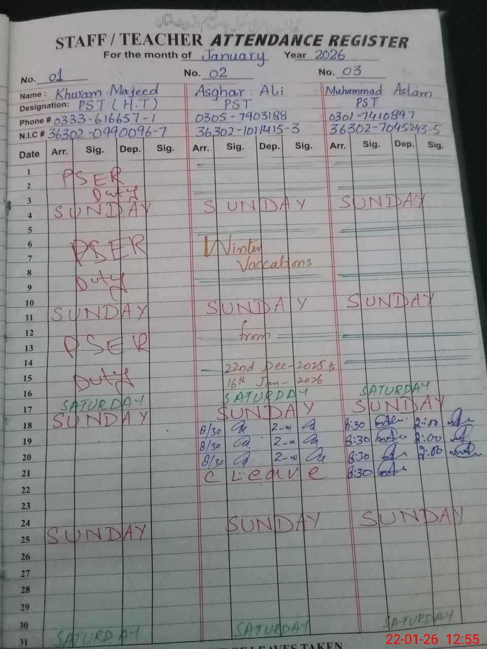 | 36**** | Um**** | PST Arts | Regular | 0 | 0 | 0 | 0 | 0 | 0 | 0 | 0 | 0 | Absent (Un-Authorized) |