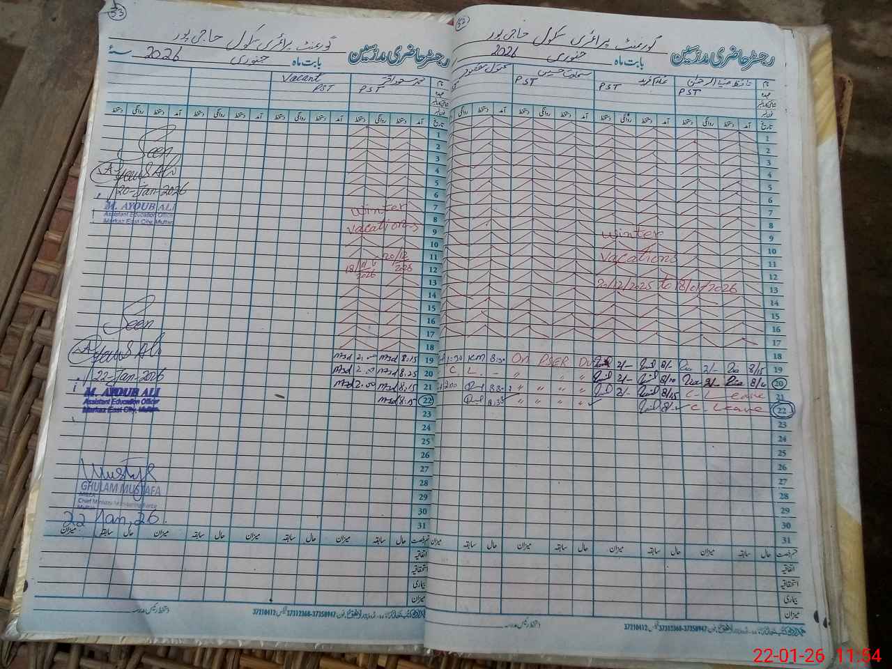 | CNIC | Full Name | Designation | R/C | Absence During Last Calender Month |
