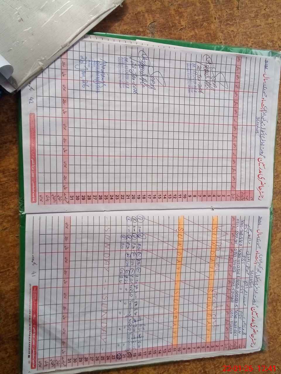 | CNIC | Full Name | Designation | R/C | Absence During Last Calender Month |