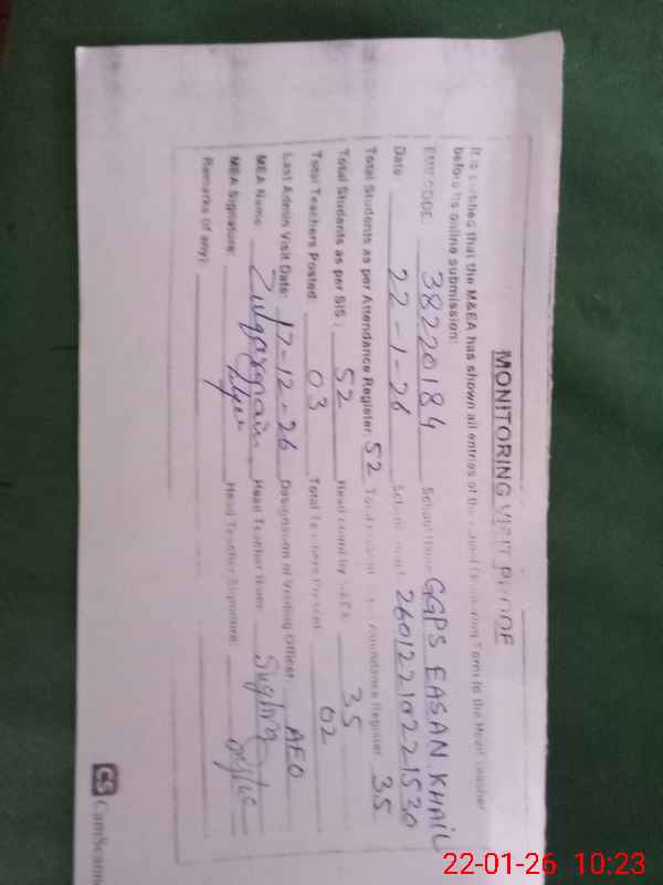 | EMIS Code: 38220184 | Name of School: GGPS EASAN KHAIL | |||