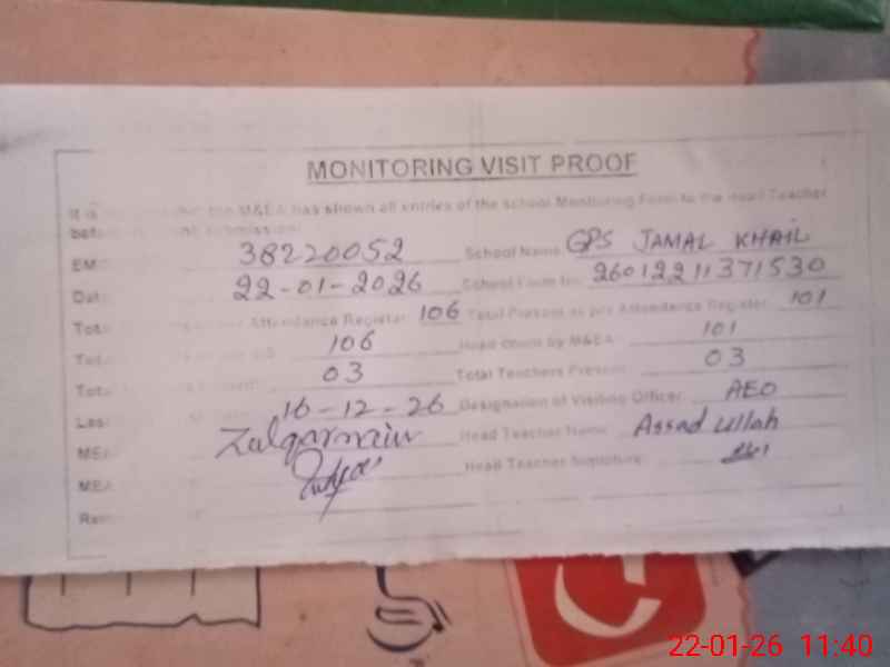 | EMIS Code: 38220052 | Name of School: GPS JAMAL KHAIL | |||