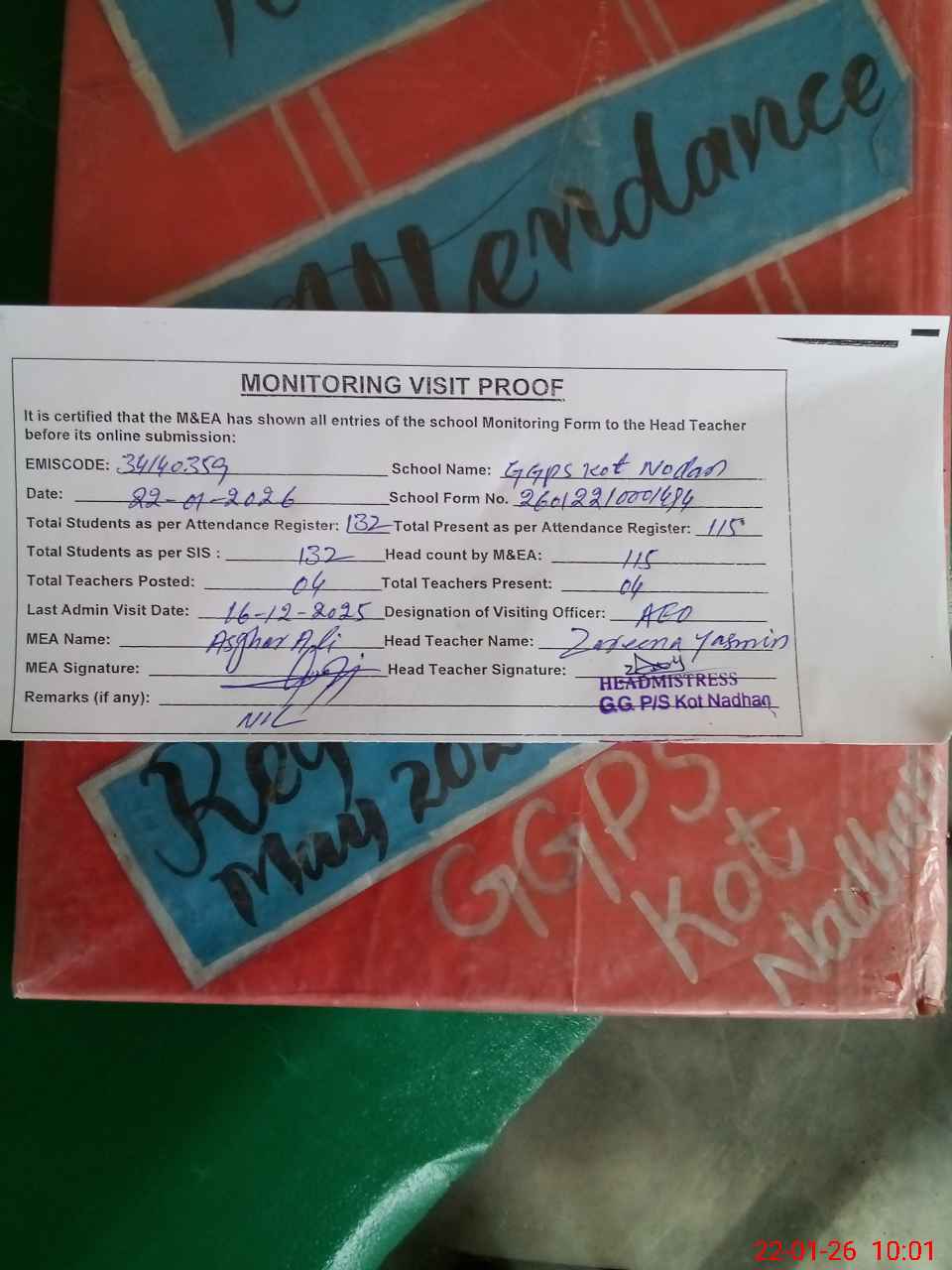 | EMIS Code: 34140359 | Name of School: GGPS KOT NODAN | |||