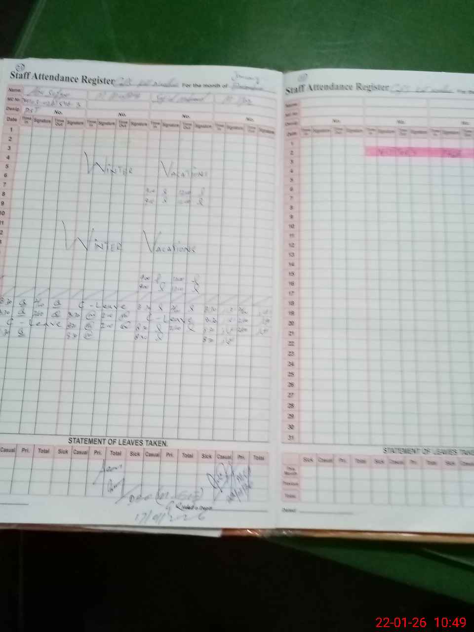 | Leave | Duty | Absent | Maternity | Medical | Ex- Pak |
