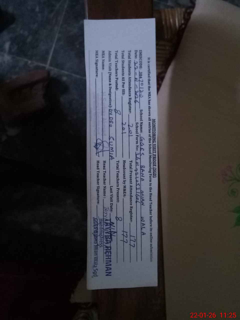 | EMIS Code: 38470120 | Name of School: GGES BANA MIAN WALA | |||