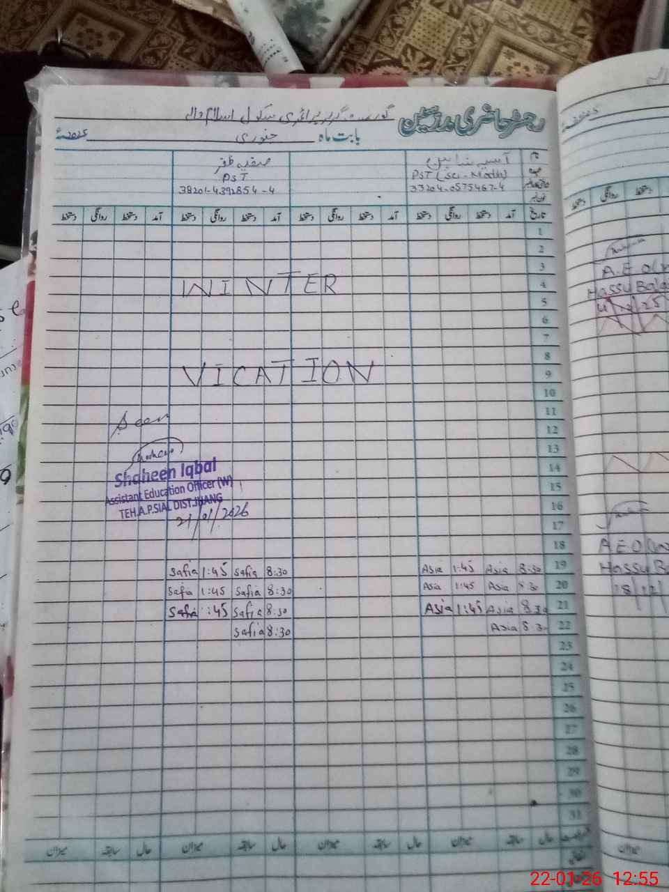 | Name: SA**** ZA**** Designation: (School Headmaster's/Headmistress's) PST Phone/Cell Number: 03**** |