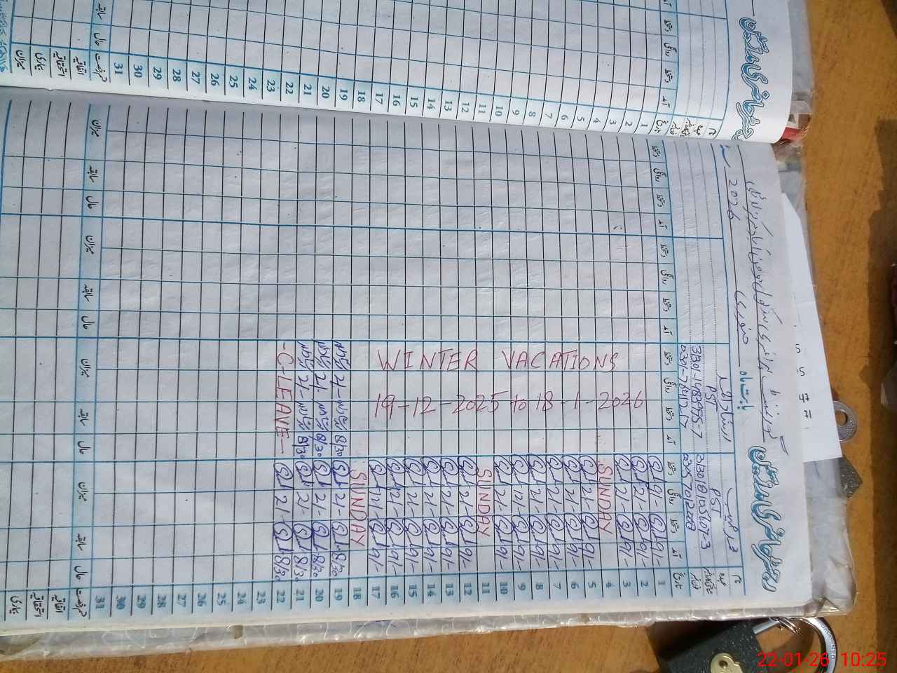 | CNIC | Full Name | Designation | R/C | Absence During Last Calender Month |