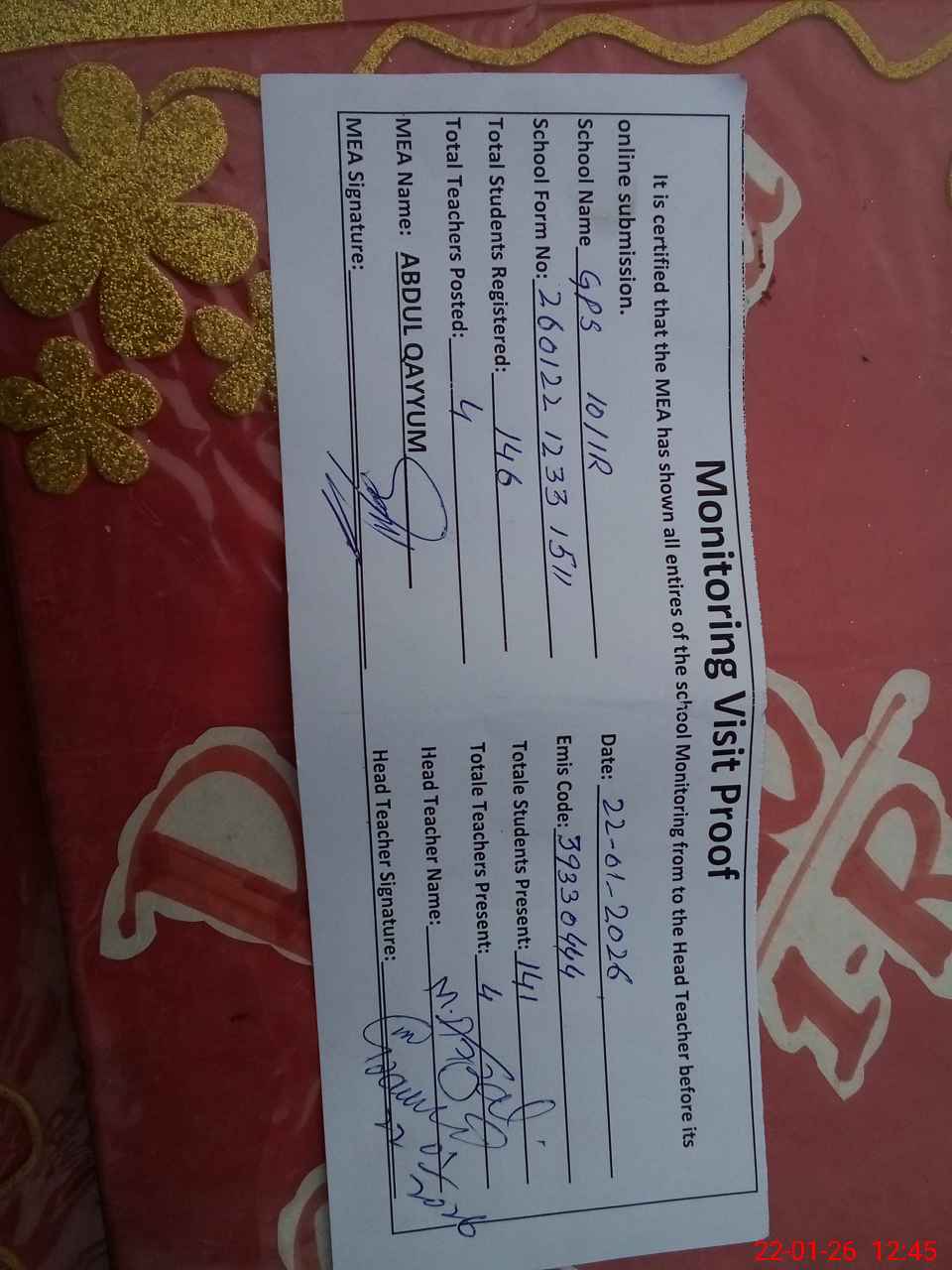 | EMIS Code: 39330444 | Name of School: GPS CHAK NO. 10/1-R | |||