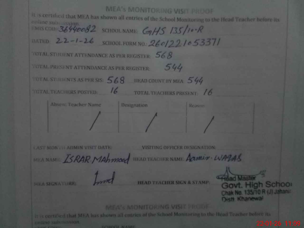 | EMIS Code: 36440082 | Name of School: GHS 135/10-R JADEED, JAHANIAN | |||
