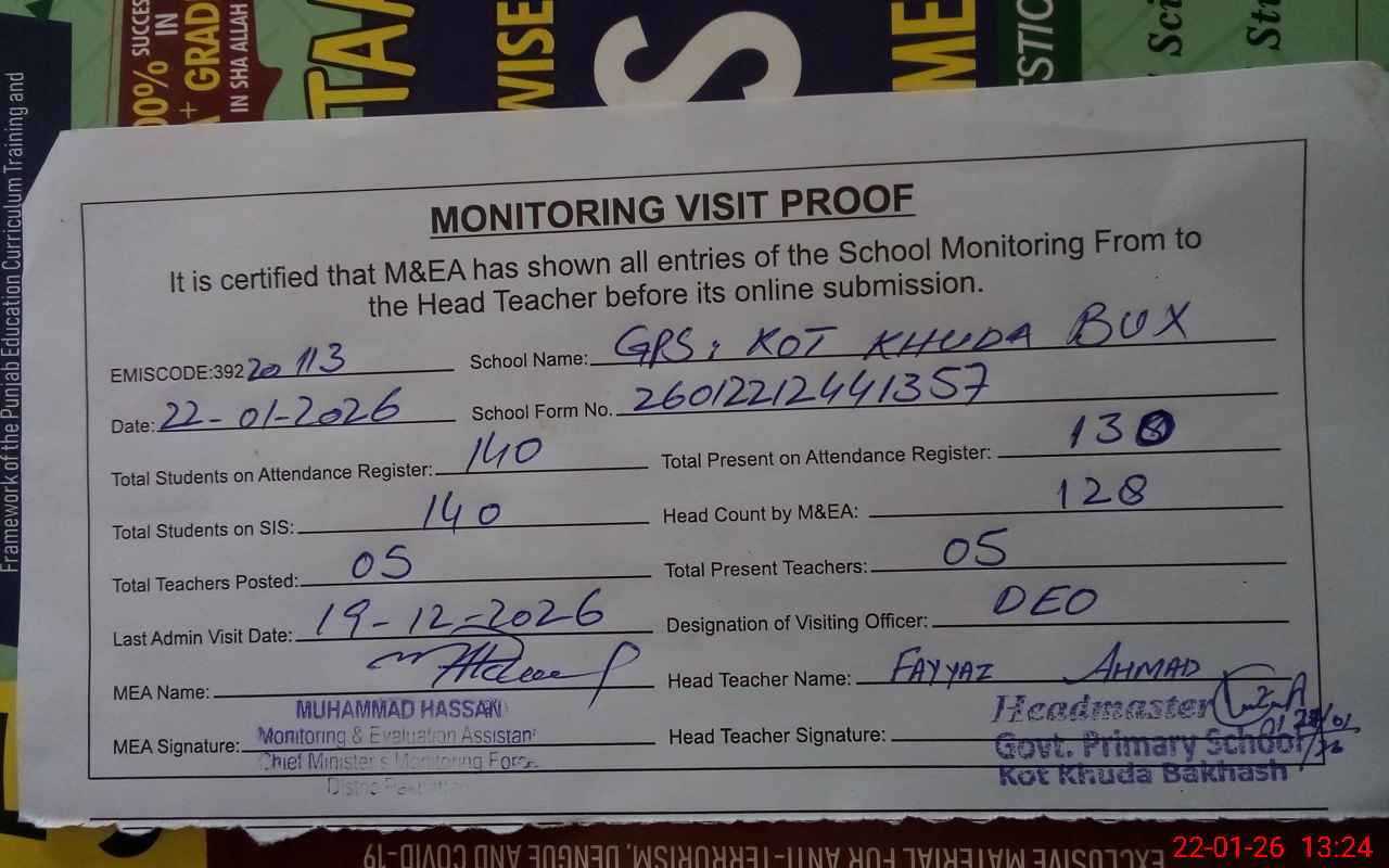| EMIS Code: 39220113 | Name of School: GPS KOT KHUDA BUKHSH | |||