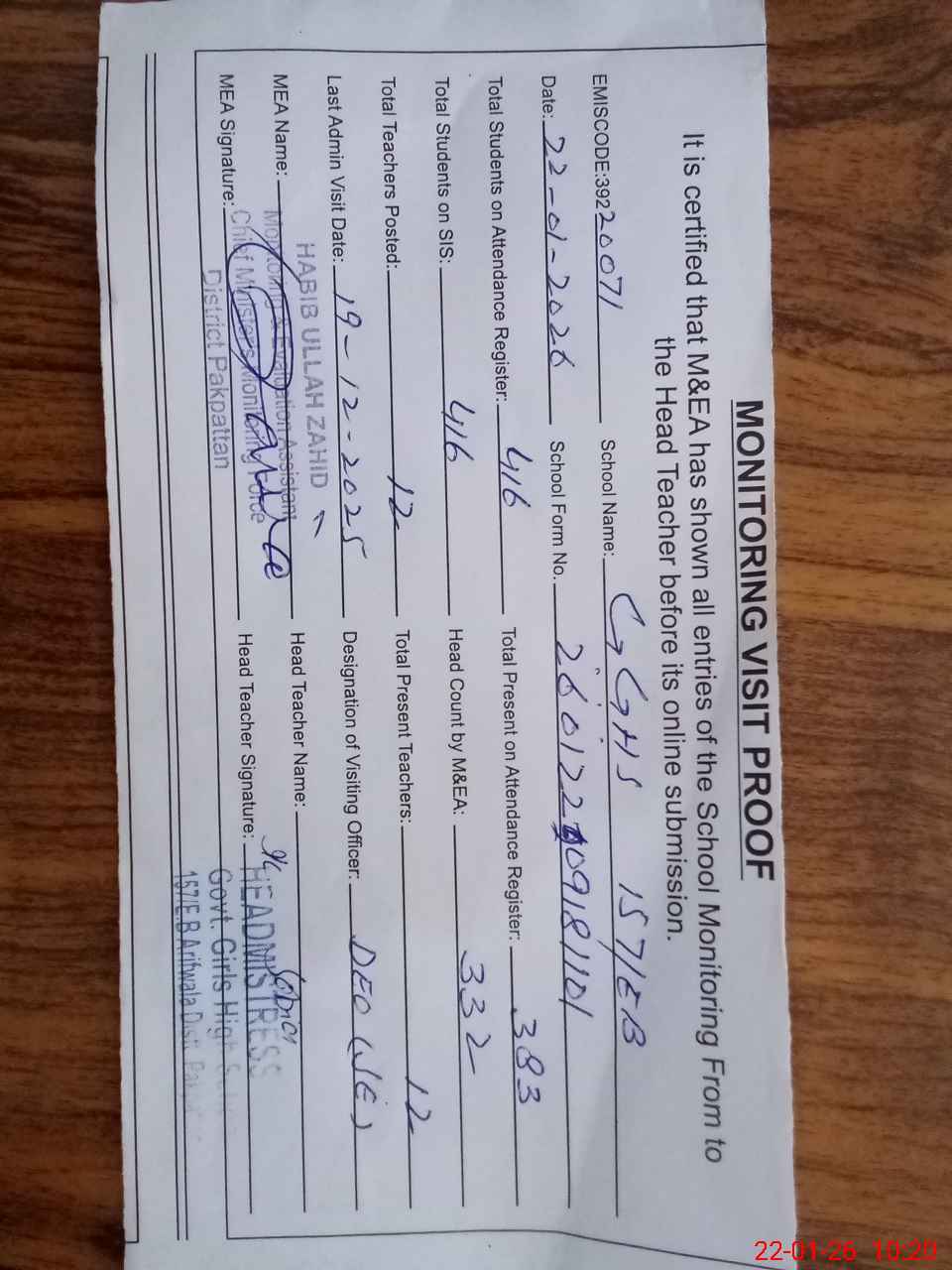 | EMIS Code: 39220071 | Name of School: GGHS CHAK NO. 157 EB | |||