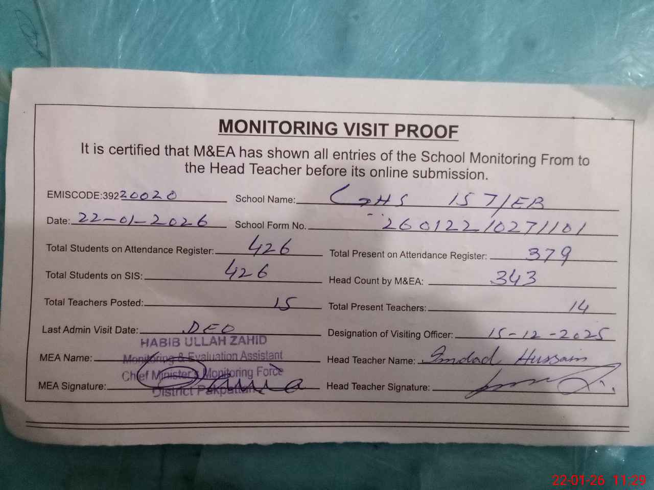 | EMIS Code: 39220020 | Name of School: GHS 157/EB | |||