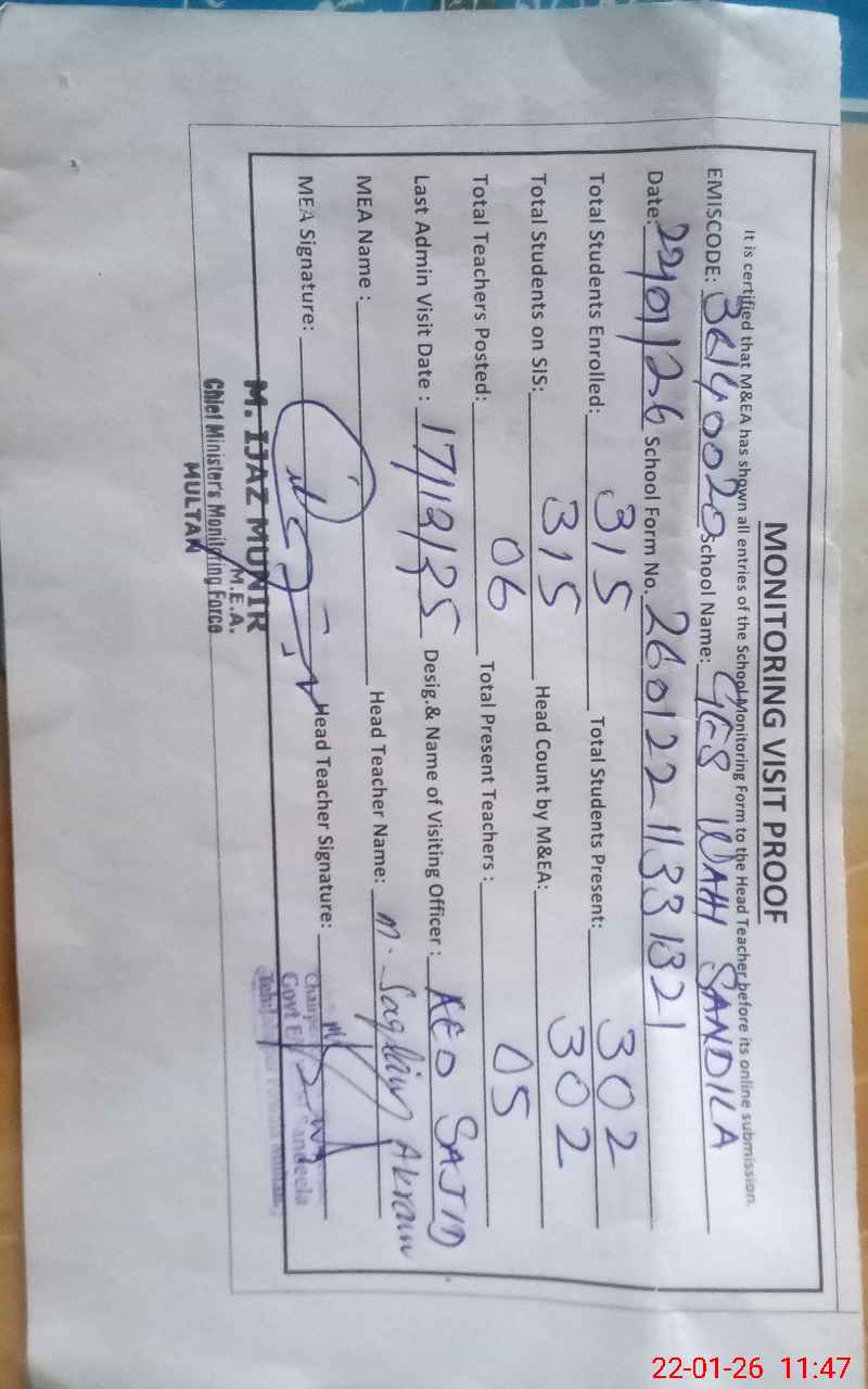| EMIS Code: 36140020 | Name of School: GES WAHI SANDILA JALALPUR PIRWALA | |||