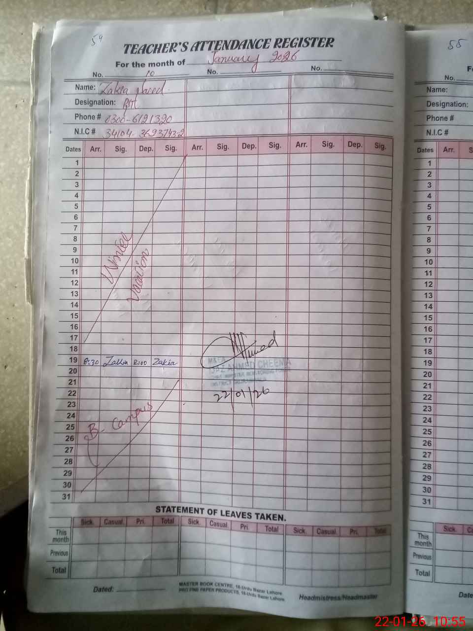 | Name: AS**** SI**** Designation: (School Headmaster's/Headmistress's) Pst Phone/Cell Number: 03**** |
