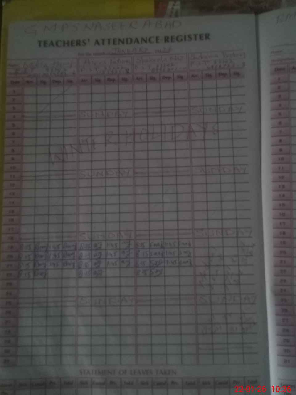 | 33**** | Sa**** Ba**** | PST Science/Maths | Regular | 0 | 0 | 0 | 0 | 0 | 0 | 0 | 0 | 0 | Absent (Un-Authorized) |