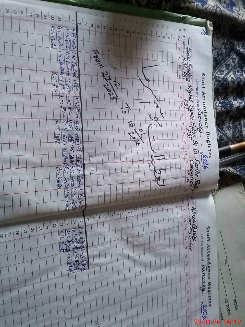 | Monitoring Date: 22-01-2026 | Start Time: 22-01-2026 08:46 AM | End Time: 22-01-2026 09:14 AM | Name of MEA: Kh**** Fa**** | |