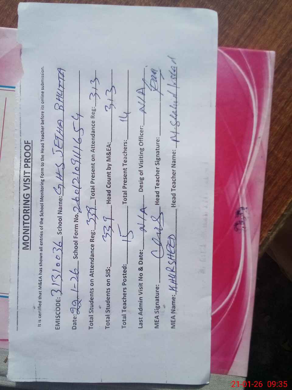 | EMIS Code: 31310036 | Name of School: GHS JETHA BHUTTA KHAN PUR | |||