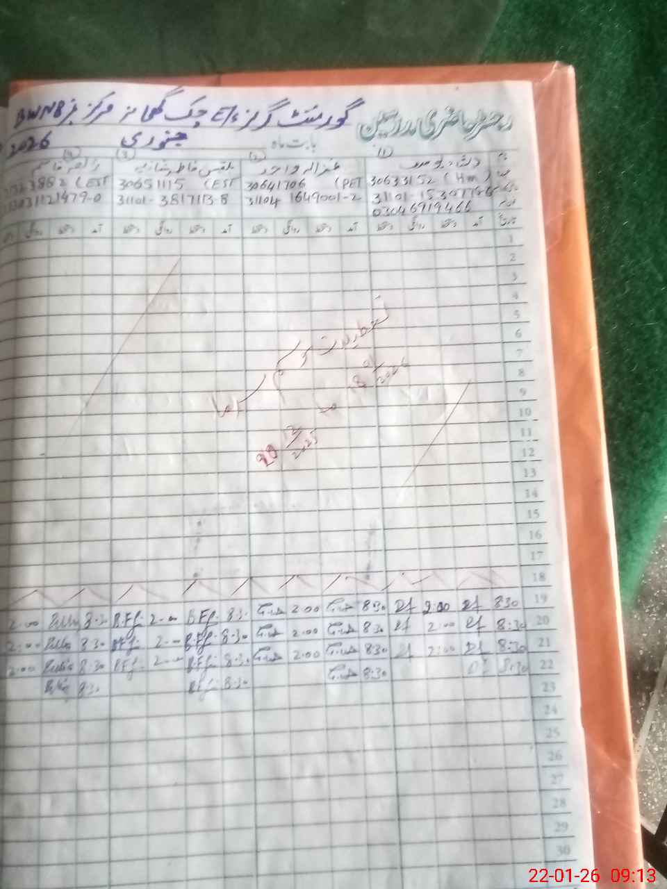 | CNIC | Full Name | Designation | R/C | Absence during last cal. month |