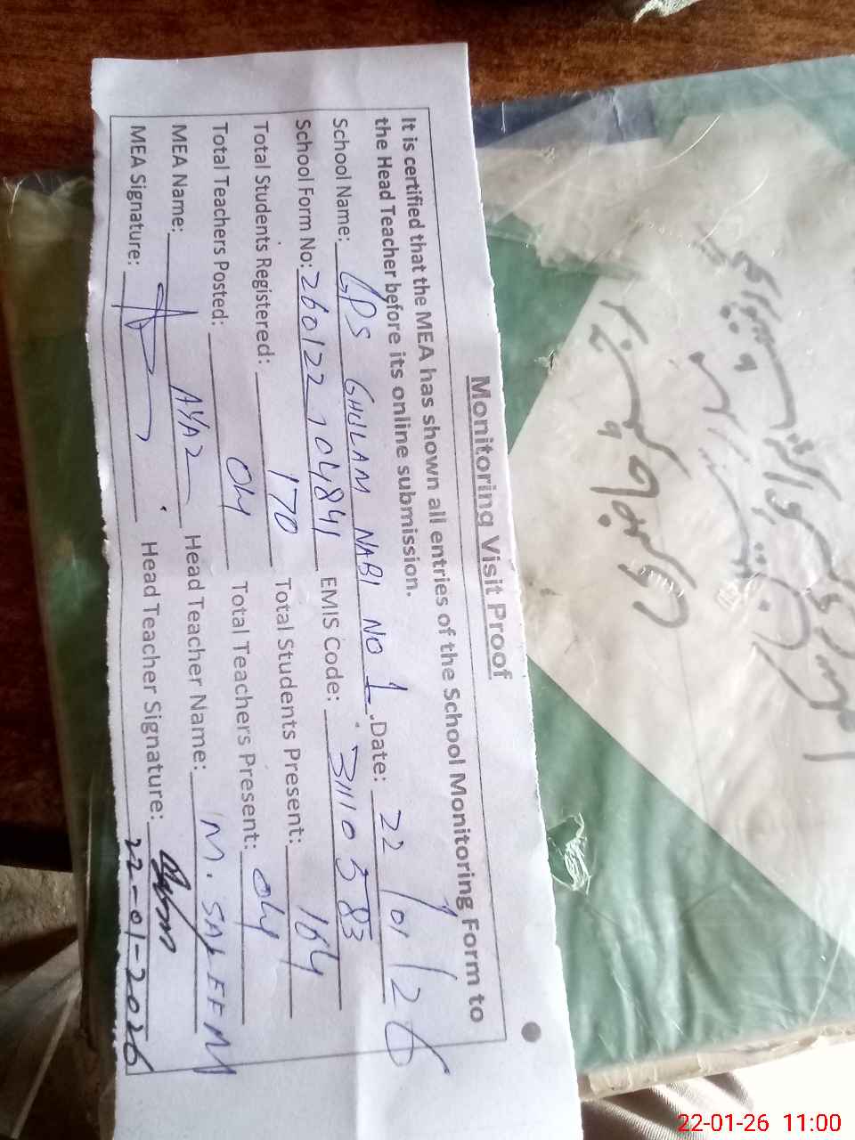 | EMIS Code: 31110583 | Name of School: GPS BASTI GHULAM NABI NO. 1 | |||