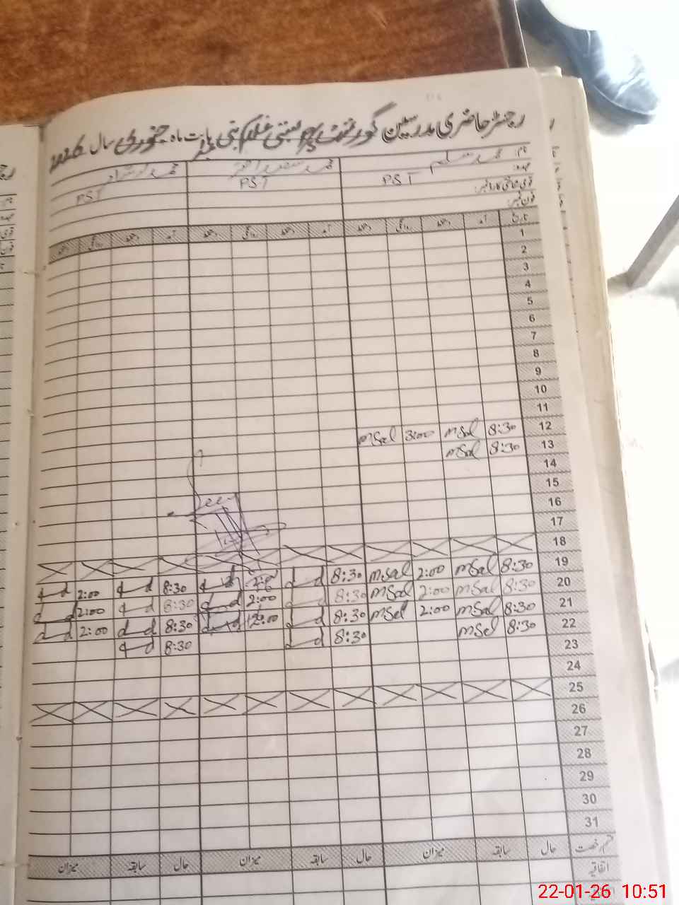 | Name: MU**** SA**** Designation: (School Headmaster's/Headmistress's) PST Phone/Cell Number: 03**** |