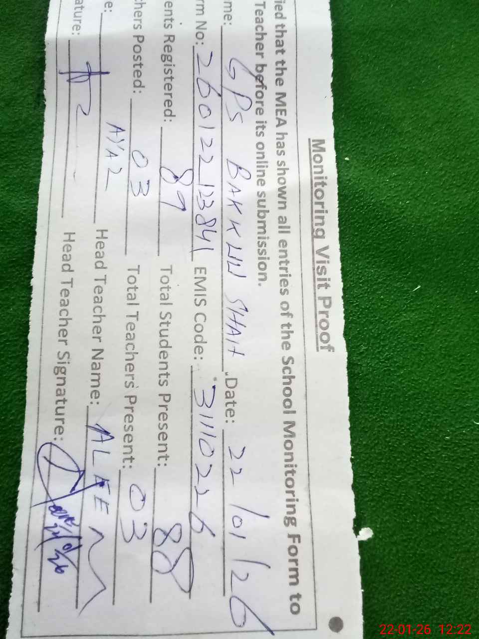 | EMIS Code: 31110226 | Name of School: GPS BAKHU SHAH NO.2 | |||