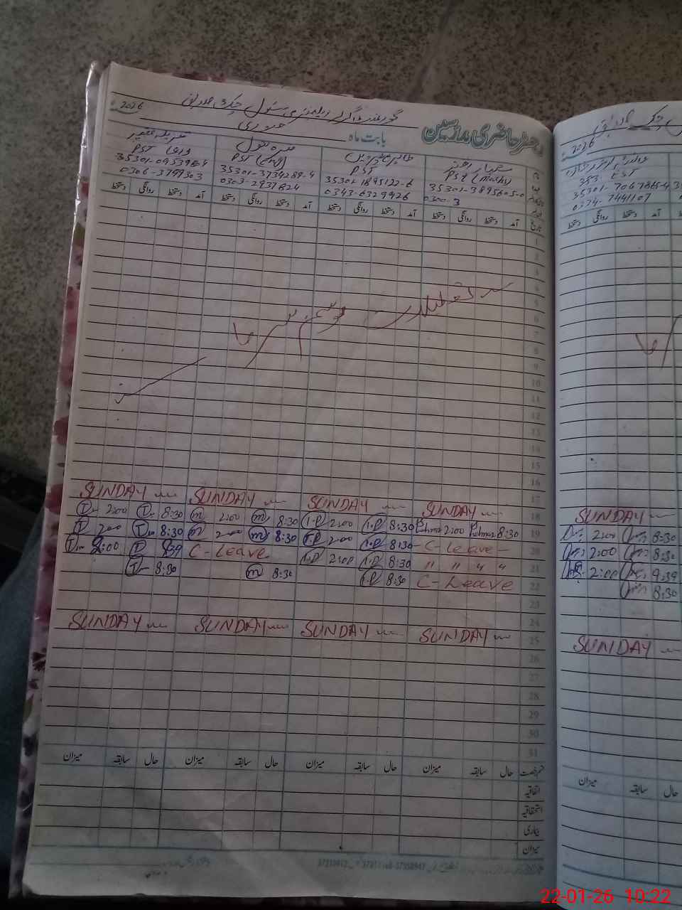 | CNIC | Full Name | Designation | R/C | Absence During Last Calender Month |