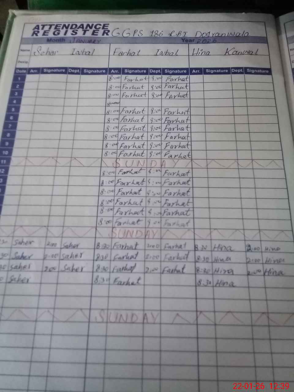 | Remarks (Use Separate Page if Required): Pst sehir Iqbal carrying baby in class room during visit | |||||