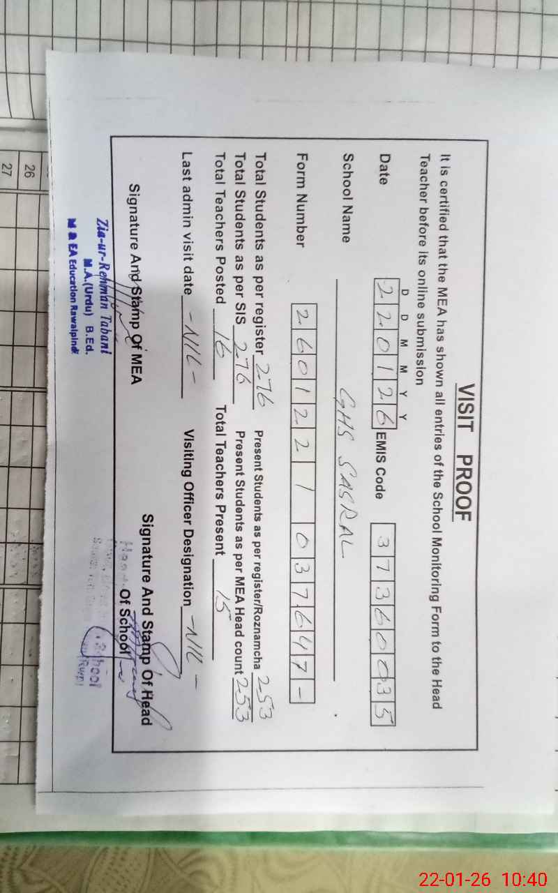 | EMIS Code: 37360035 | Name of School: GHS SASRAL | |||