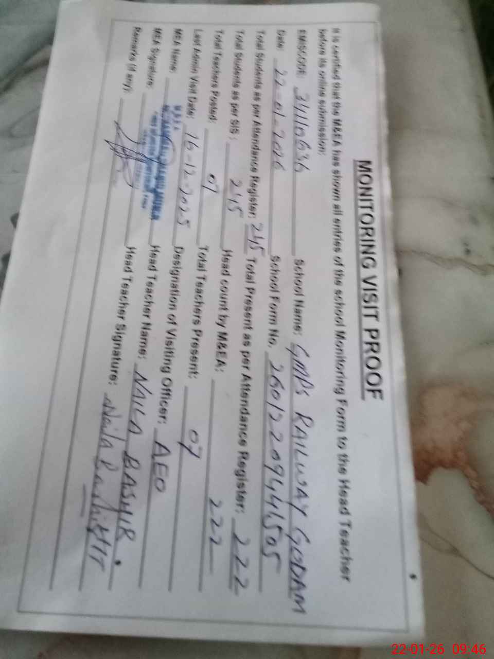 | EMIS Code: 34110636 | Name of School: GMPS RAILWAY GODAM | |||
