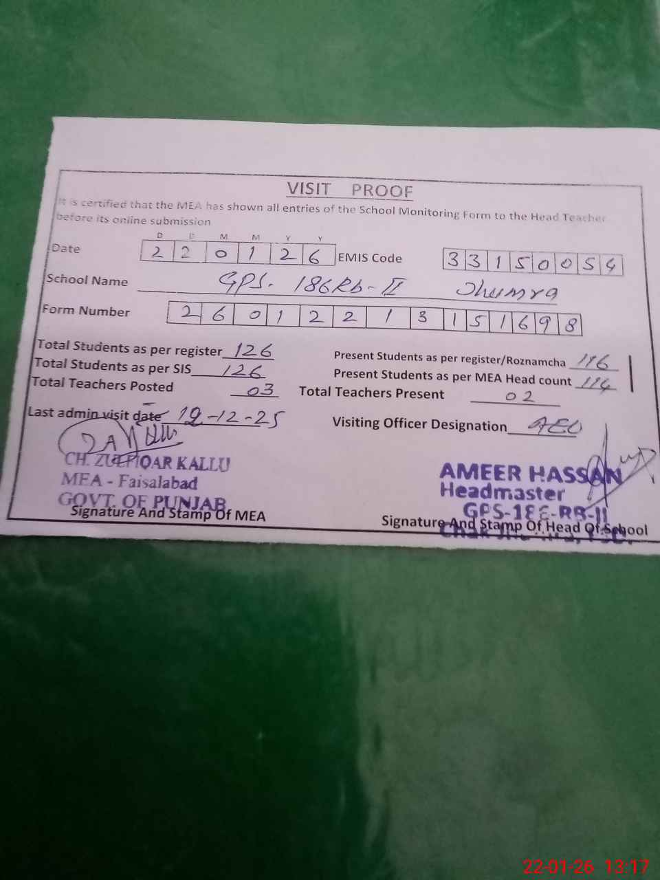 | EMIS Code: 33150054 | Name of School: GPS 186 RB-II | |||