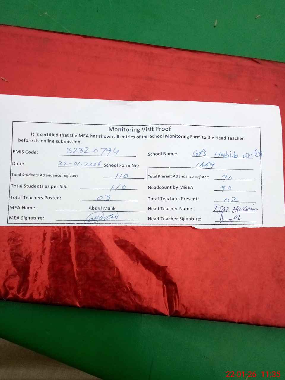 | EMIS Code: 32320794 | Name of School: GPS HABIB WALA | |||
