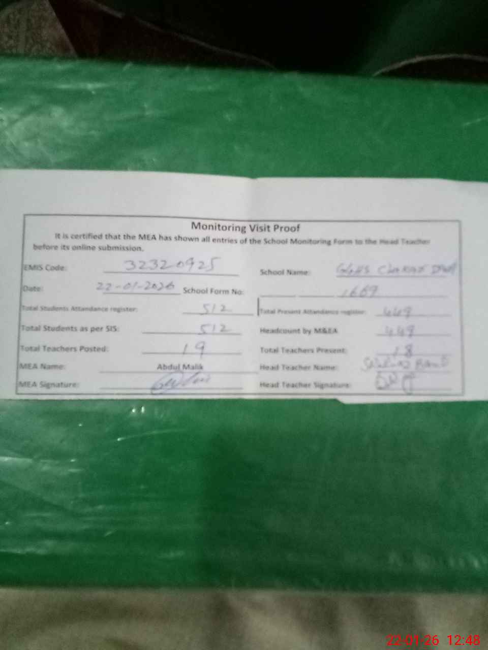 | EMIS Code: 32320925 | Name of School: GGHS CHAKAR DARI | |||