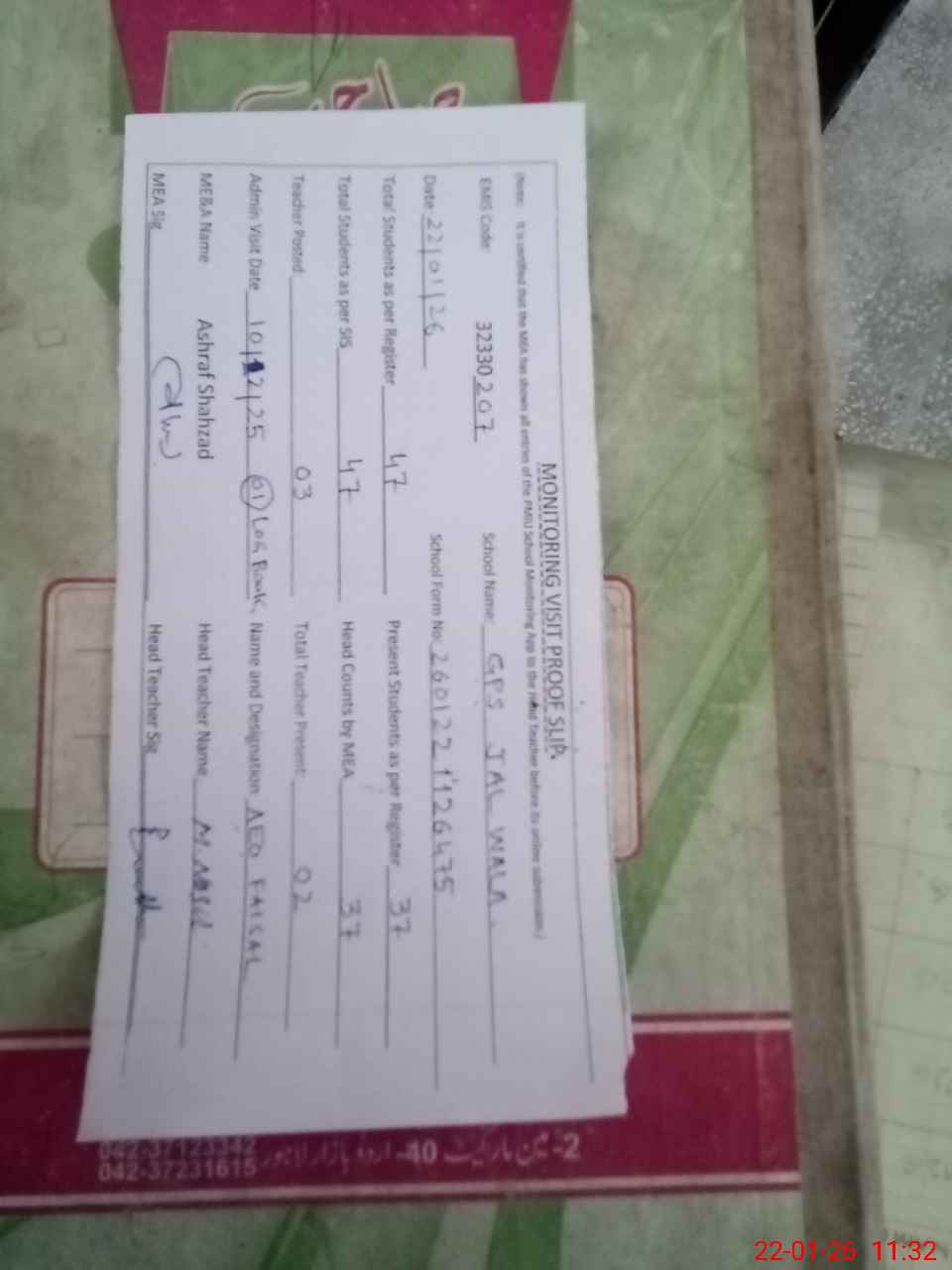 | EMIS Code: 32330207 | Name of School: GPS JAL WALA | |||