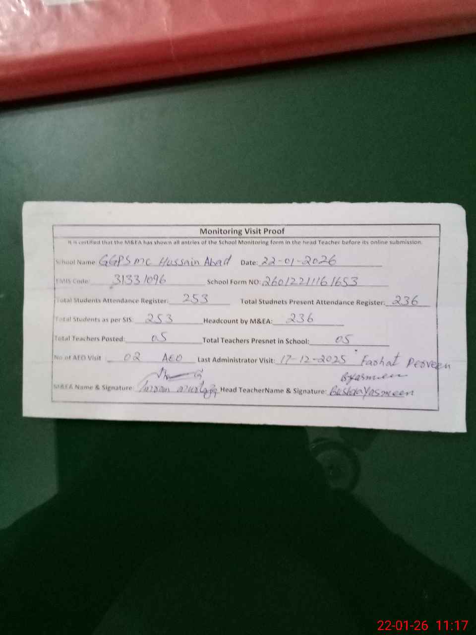 | EMIS Code: 31331096 | Name of School: GGPS MC HUSSAIN ABAD | |||