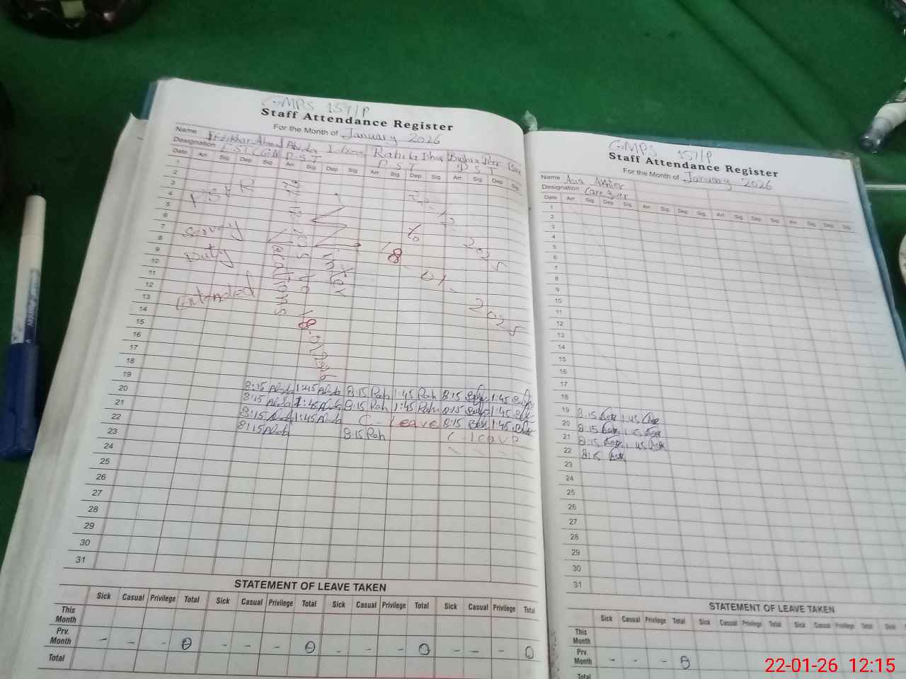 | Remarks (Use Separate Page if Required): observstion bushra peer bux pst leave not aproved considered as absent | |||||