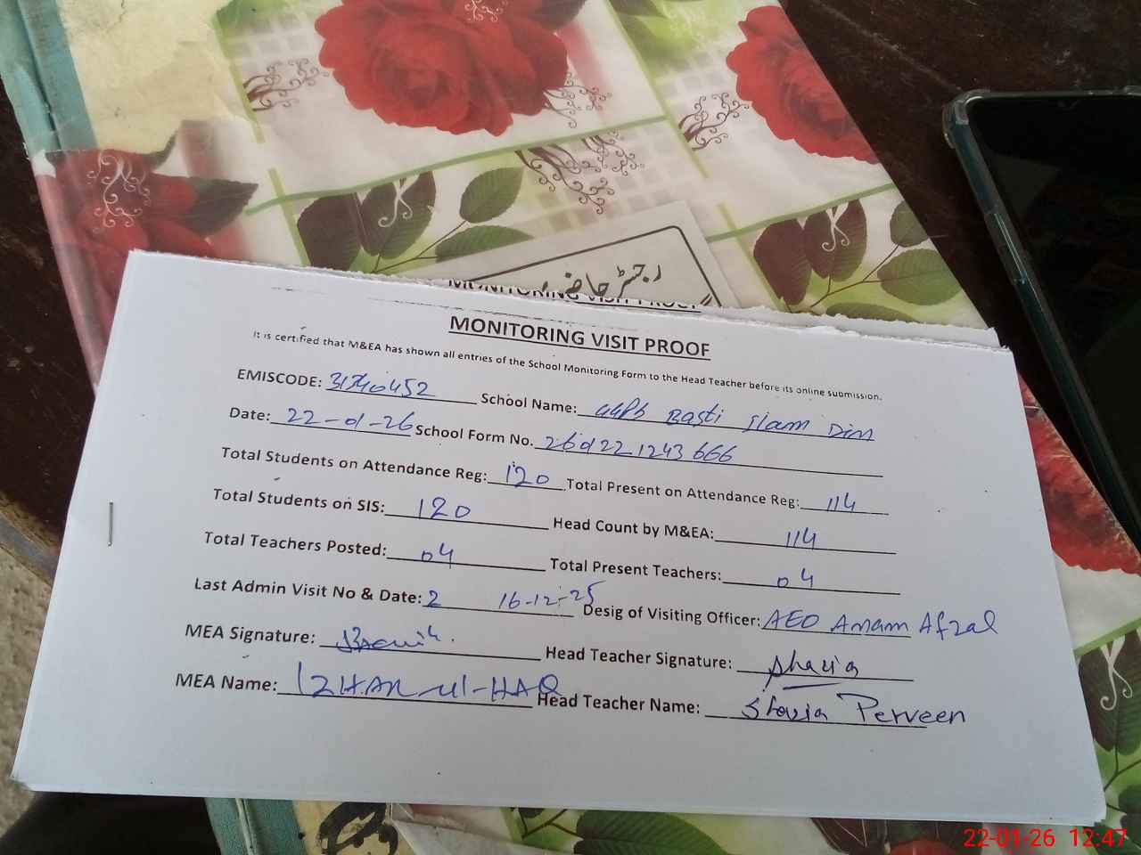 | EMIS Code: 31340452 | Name of School: GGPS BASTI ILAM DIN | |||