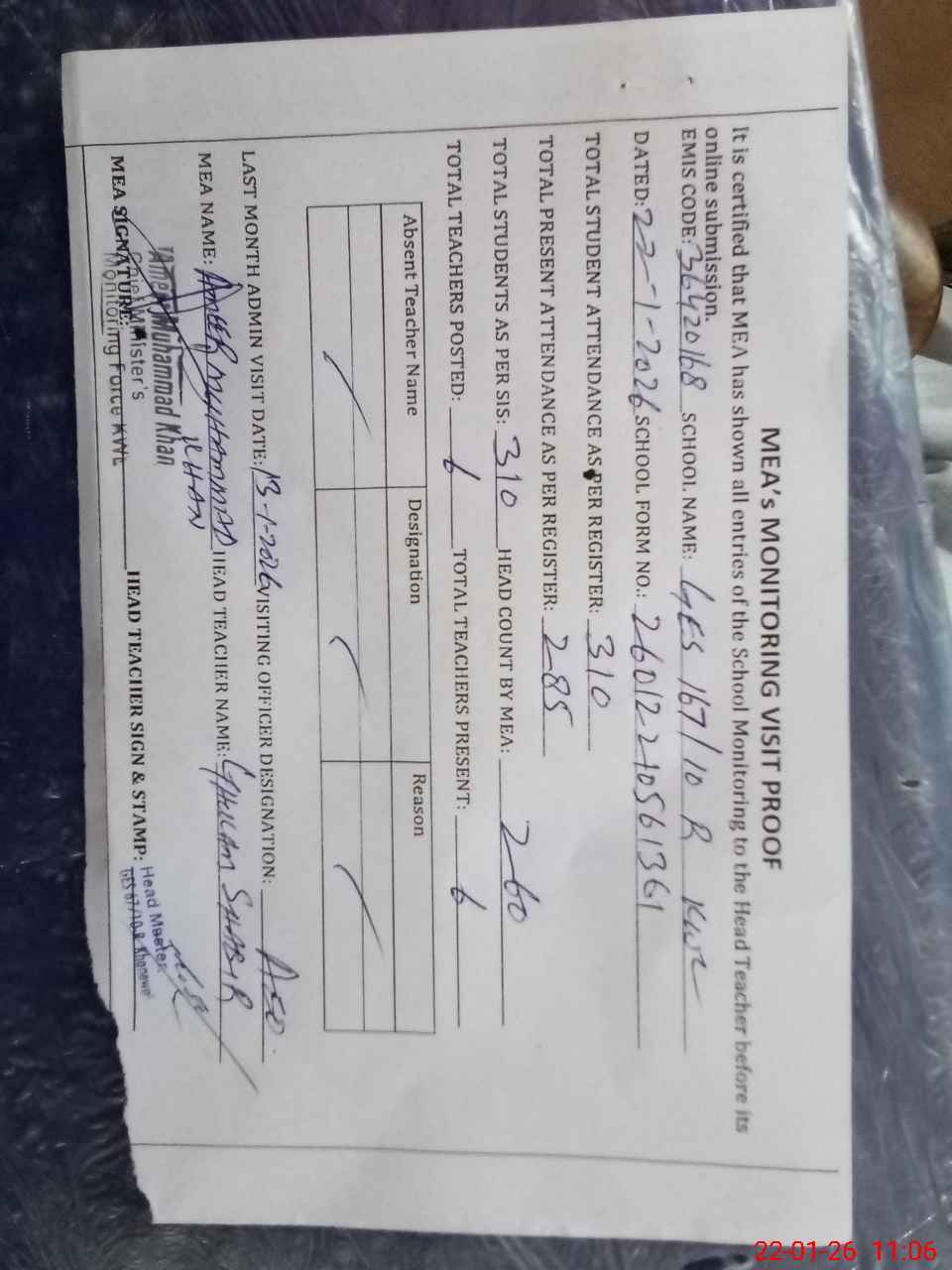 | Monitoring Date: 22-01-2026 | Start Time: 22-01-2026 10:44 AM | End Time: 22-01-2026 11:42 AM | Name of MEA: Am**** Mu**** Kh**** | |